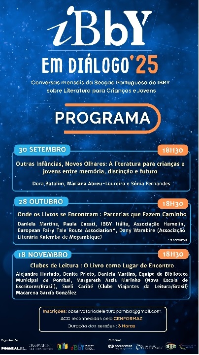 Promovidas pela Secção Portuguesa do IBBY e Rede de Bibliotecas de Pombal e propostas pelos vários agrupamentos de escolas do concelho de Pombal, serão realizadas as seguintes ACD (ainda em processo de reconhecimento pela Comissão Pedagógica do CENFORMAZ):